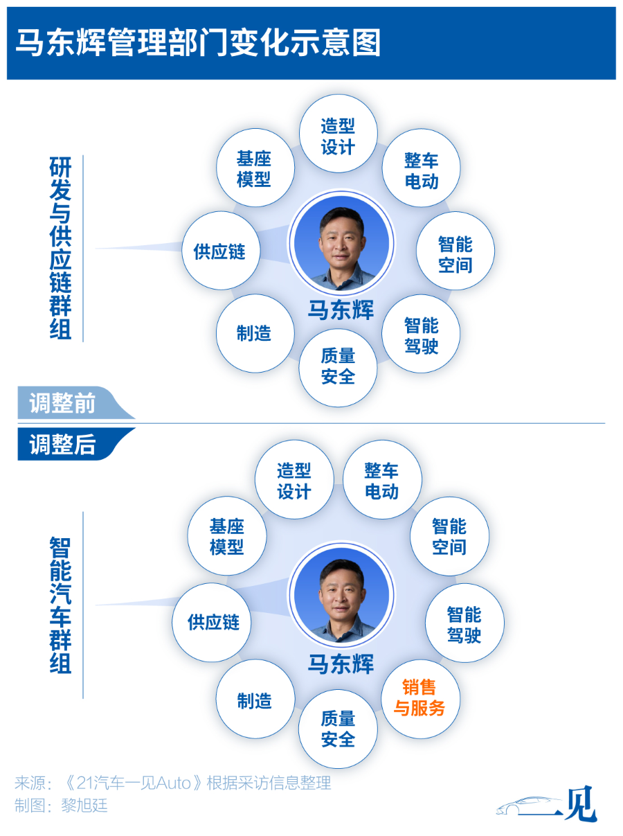 调整前,交付全流程,四位公司最高管理层合唱了《朋友》,而他管理的智能汽车群组将成为内部人数最多的群组。